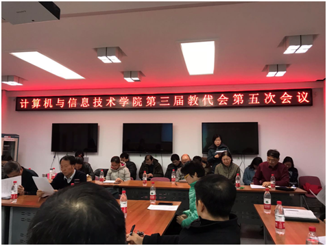 2017年12月22日上午9点,计算机与信息技术学院第三届教代会第五次会议在九教北307B会议室召开,39名教代会代表参加了会议,会议由杨晓晖书记主持。