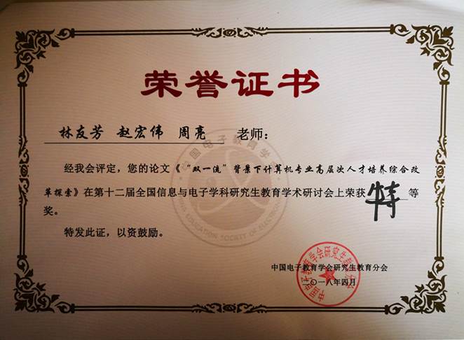 该论文受到了会议代表、专家的广泛认可。经专家评审,《“双一流”背景下计算机专业高层次人才培养综合改革探索》荣获本次研讨会特等奖 。